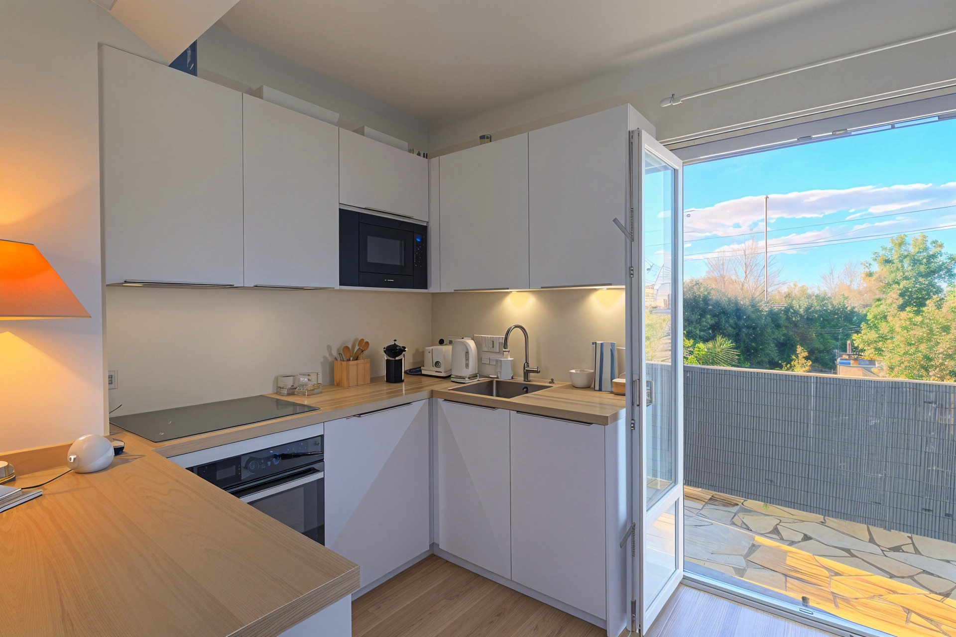Le séjour de 22m2 s'ouvre sur une terrasse d'angle, sans vis-à-vis et doublement exposée, ce qui lui assure une agréable luminosité tout au long de la journée.