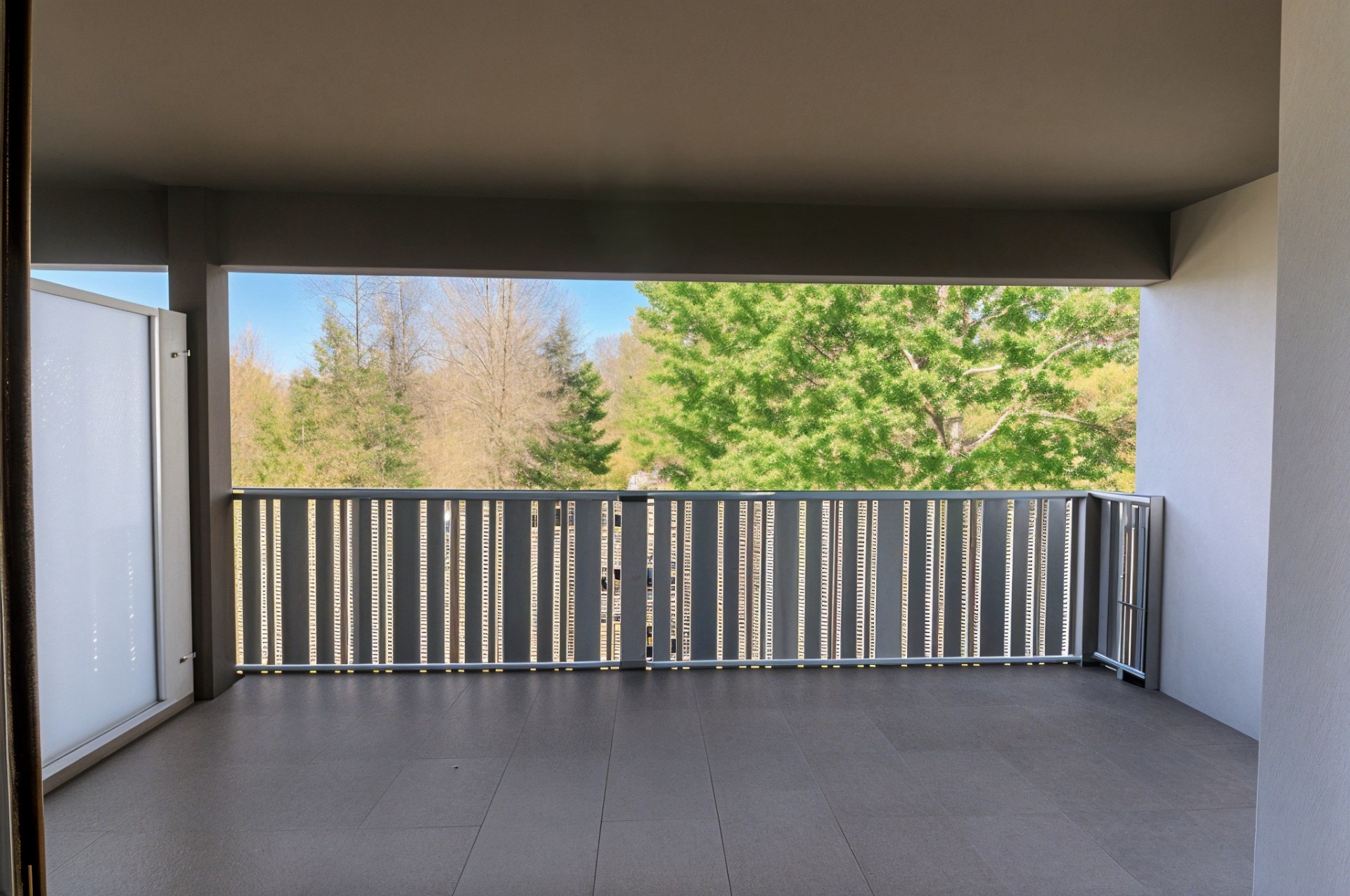 Sa pièce de vie s'ouvre sur une terrasse de 13m2 couverte offrant une vue imprenable sur un parc et lui assurant verdure et calme tout au long de l'année.