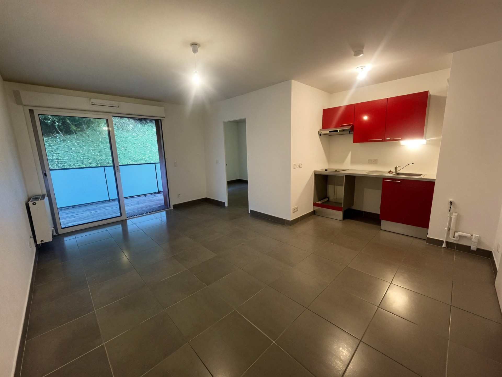 Implanté au calme sur la partie arrière de la copropriété, il se compose d'un hall d'entrée avec placard, d’un salon avec cuisine de 20 m2 donnant accès à un balcon sans aucun vis-à-vis, une chambre avec placard, et une salle d’eau avec WC.