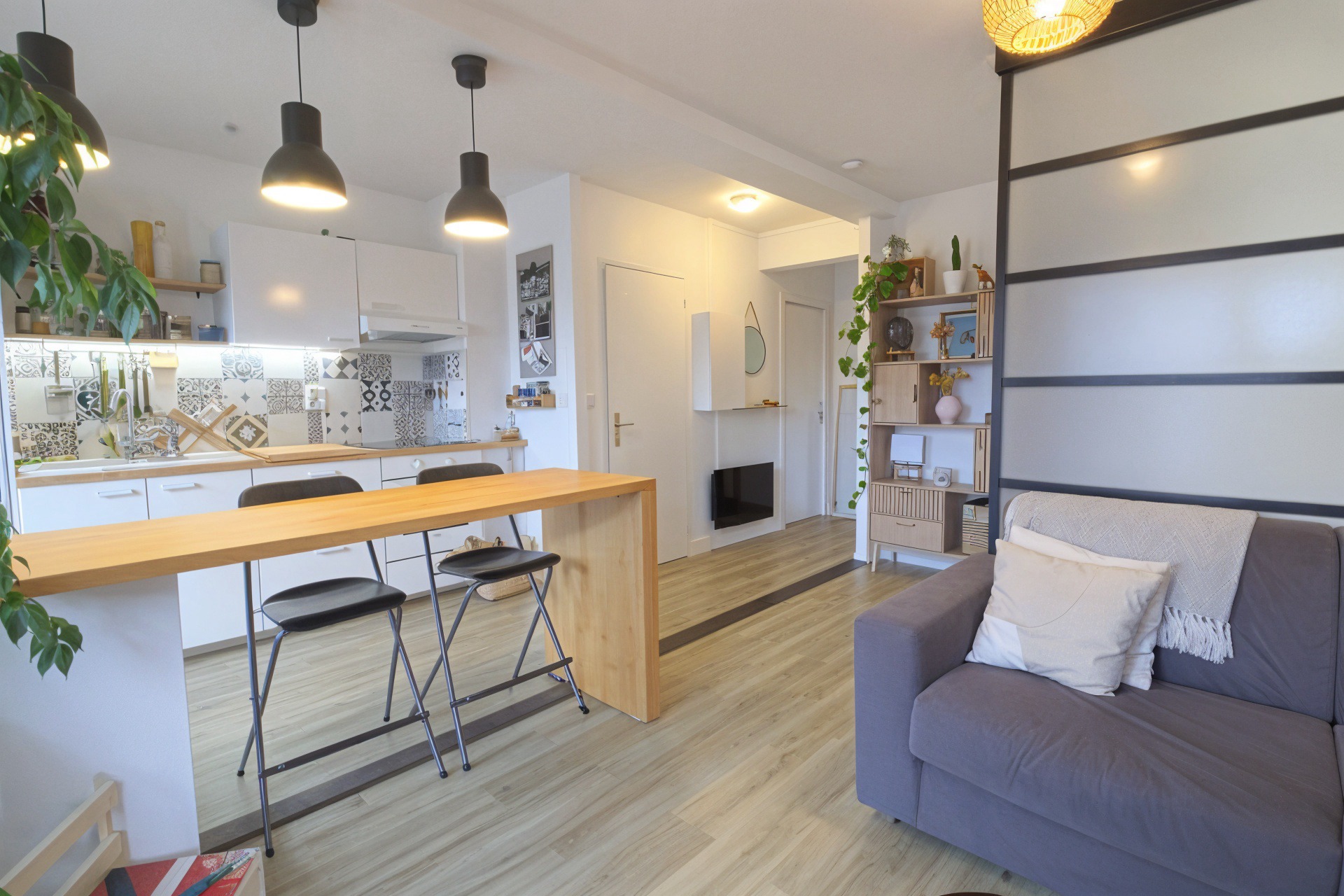 Nous avons le plaisir de vous présenter à la vente, REGINA cet appartement T1 BIS fonctionnel totalement rénové en plein cœur de Biarritz, avec son salon avec coin nuit intimiste pouvant accueillir un lit double, son dressing et sa cuisine ouverte.