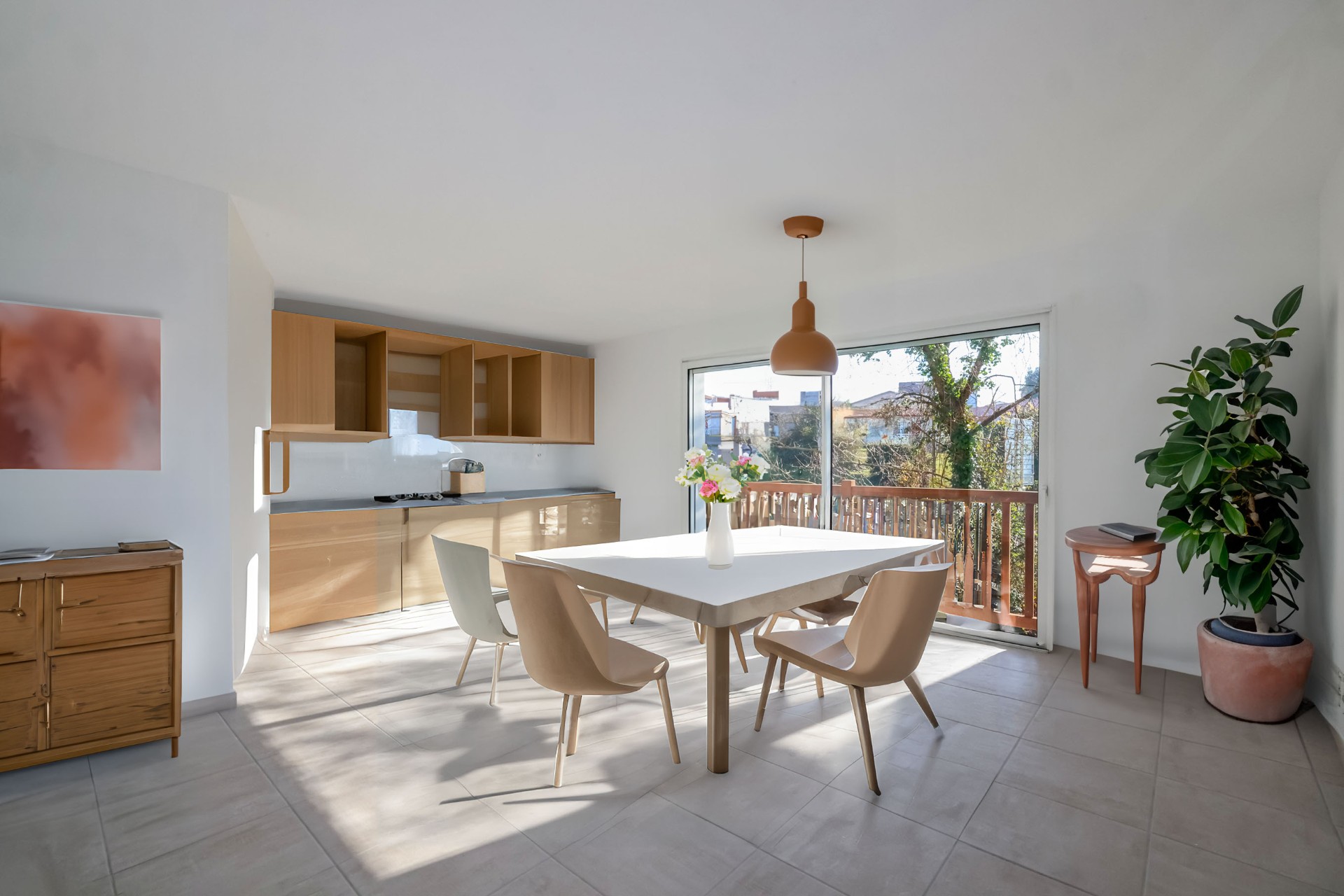 Ce T4 entièrement neuf séduit par ses volumes bien pensés, ses baies vitrées à galandage, son WC séparé et suspendu, ainsi que sa climatisation réversible. Il est vendu avec une cuisine incluse, qu’il sera possible de choisir auprès de notre partenaire.