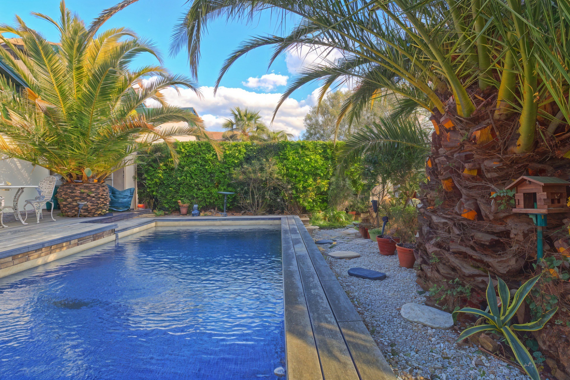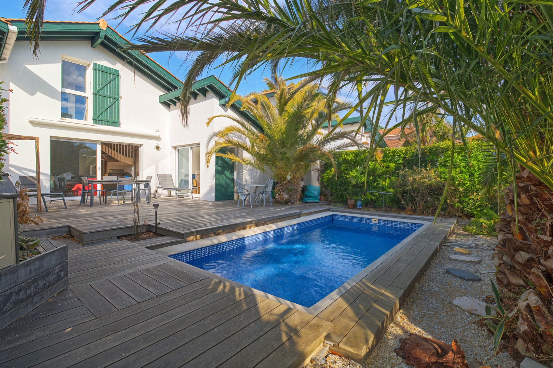 Edifiée en 2005 sur un terrain arboré, elle dispose d'une piscine au sel parfaitement intégrée pour profiter des beaux jours en toute intimité.