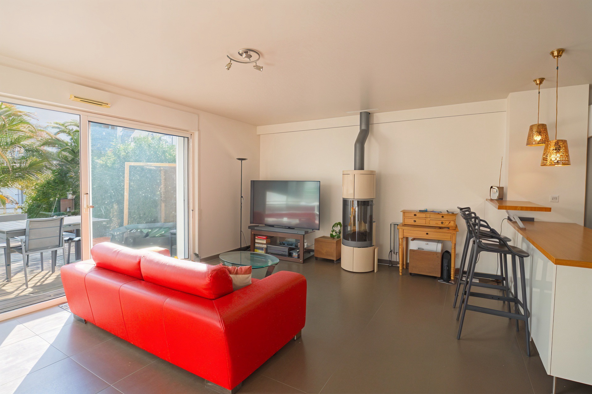 Cette élégante maison aux finitions soignées propose de nombreuses prestations telles que la climatisation réversible, un poêle à bois et un système de chauffage récent lui assurant une excellente classe énergétique en B.
