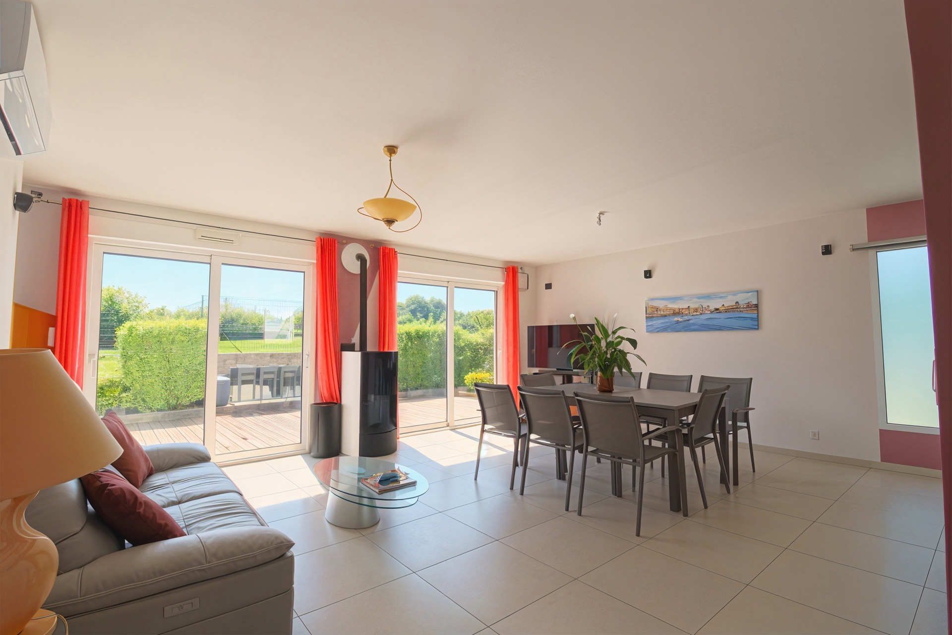 Le tout ouvert sur la terrasse et jardin exposés Sud-Ouest.