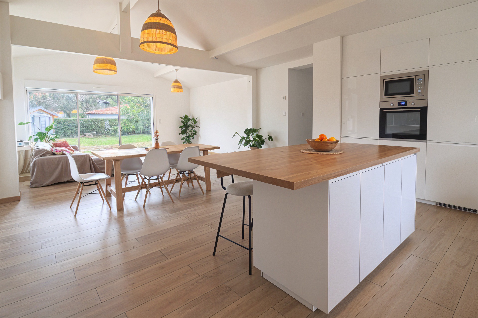 Située dans un lotissement calme à proximité des commerces et des transports, vous serez immédiatement séduit par son majestueux salon baigné de luminaire de 55 m2 avec cuisine ouverte exposé plein Sud, dans un style déco bois naturel.
