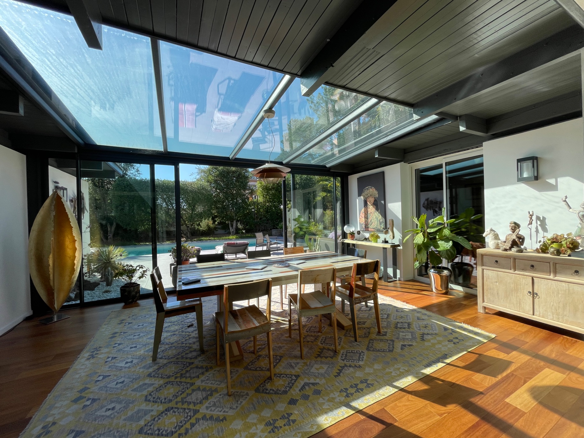 Au delà du portail sécurisé, une entrée soignée vous accueille avec un large stationnement et un garage. Le jardin entoure la maison, et la contient dans un écrin paysager travaillé et particulièrement entretenu. Développée sur 218m2 environ pour sa partie principale, "BENGAL" a tout d'une grande dame, un espace de vie de plus de 91m2 vous accueille totalement ouvert sur le pool et l'espace piscine.