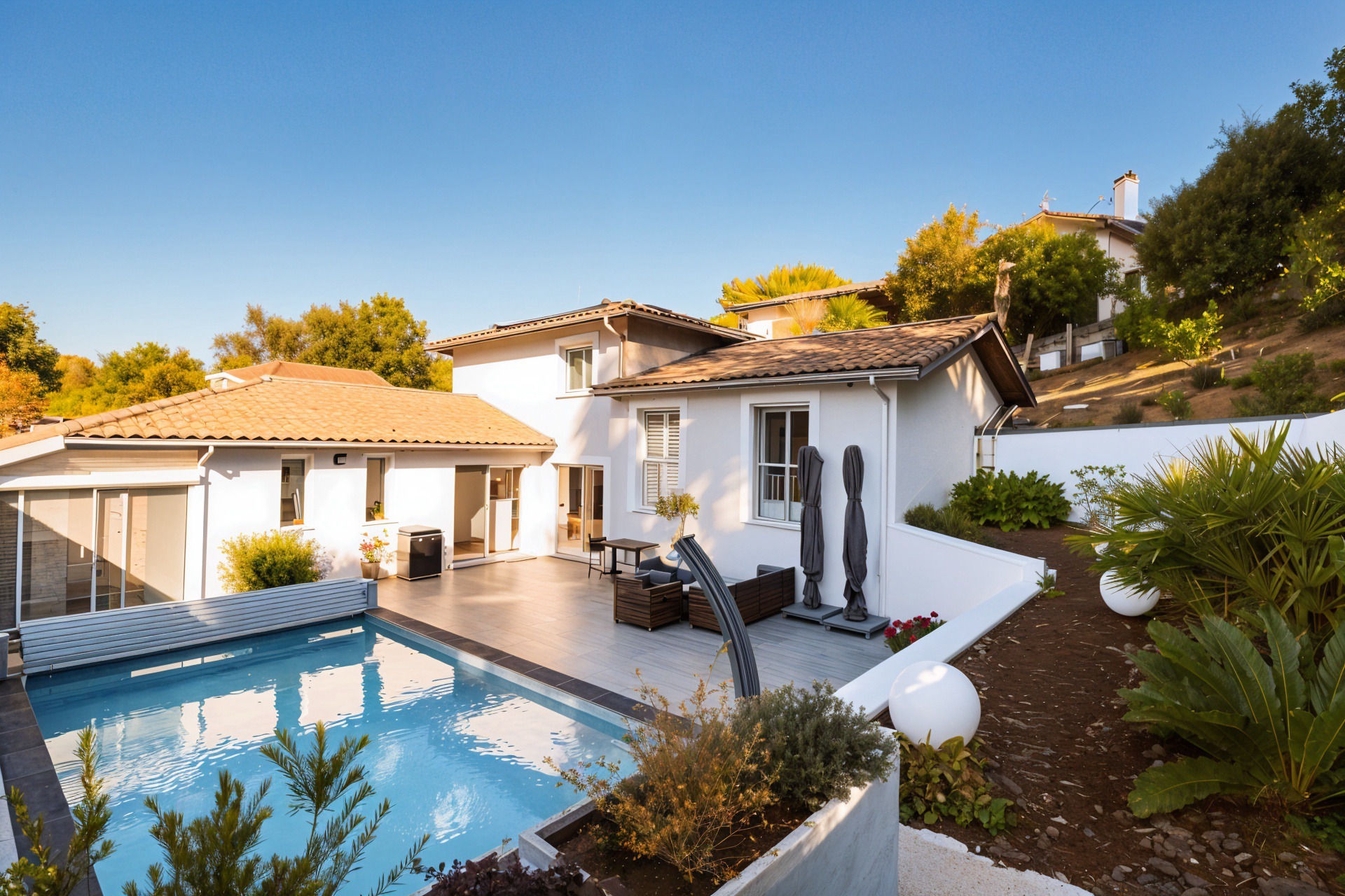Vous ne pourrez qu'apprécier le jardin, facile d'entretien et la piscine chauffée sans aucun vis-à-vis.