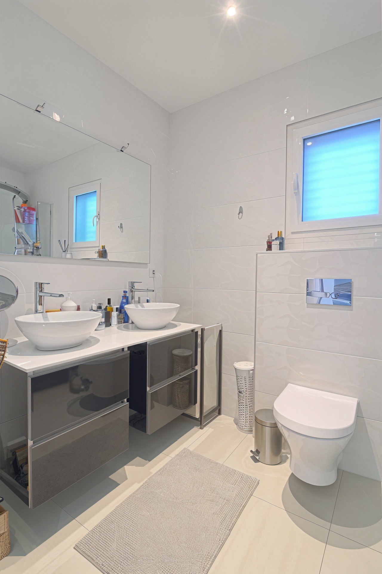 Le niveau principal (environ 100 m²) se compose d'un salon lumineux et une salle à manger avec accès direct à la terrasse et au jardin, de trois chambres, dont une suite parentale, d'une salle de bains avec WC.