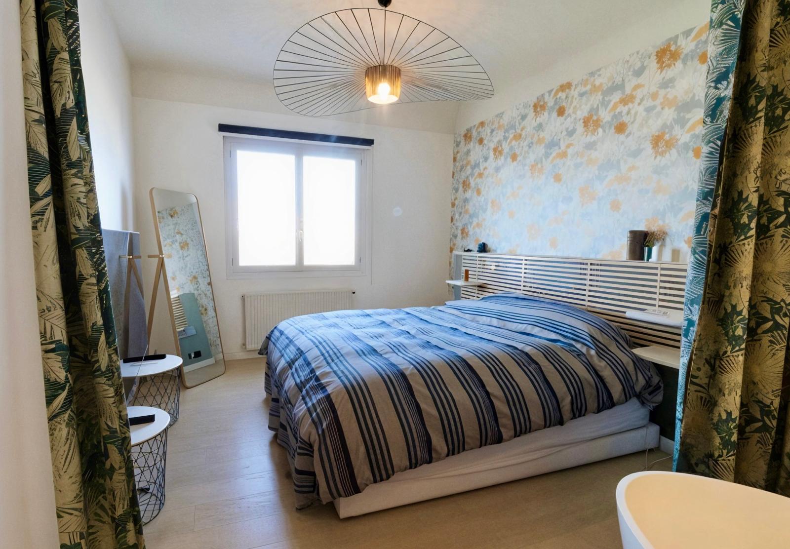 Elle se compose en rez-de- chaussée d’un vaste appartement T3 de 93 m2, avec salon et cuisine ouverte de 50 m2 donnant accès sur une terrasse exposée Sud, 2 chambres, 1 salle d’eau et 1 WC indépendant. A ce niveau retrouvez également, un espace buanderie, une cave à vin et un garage de 33m2