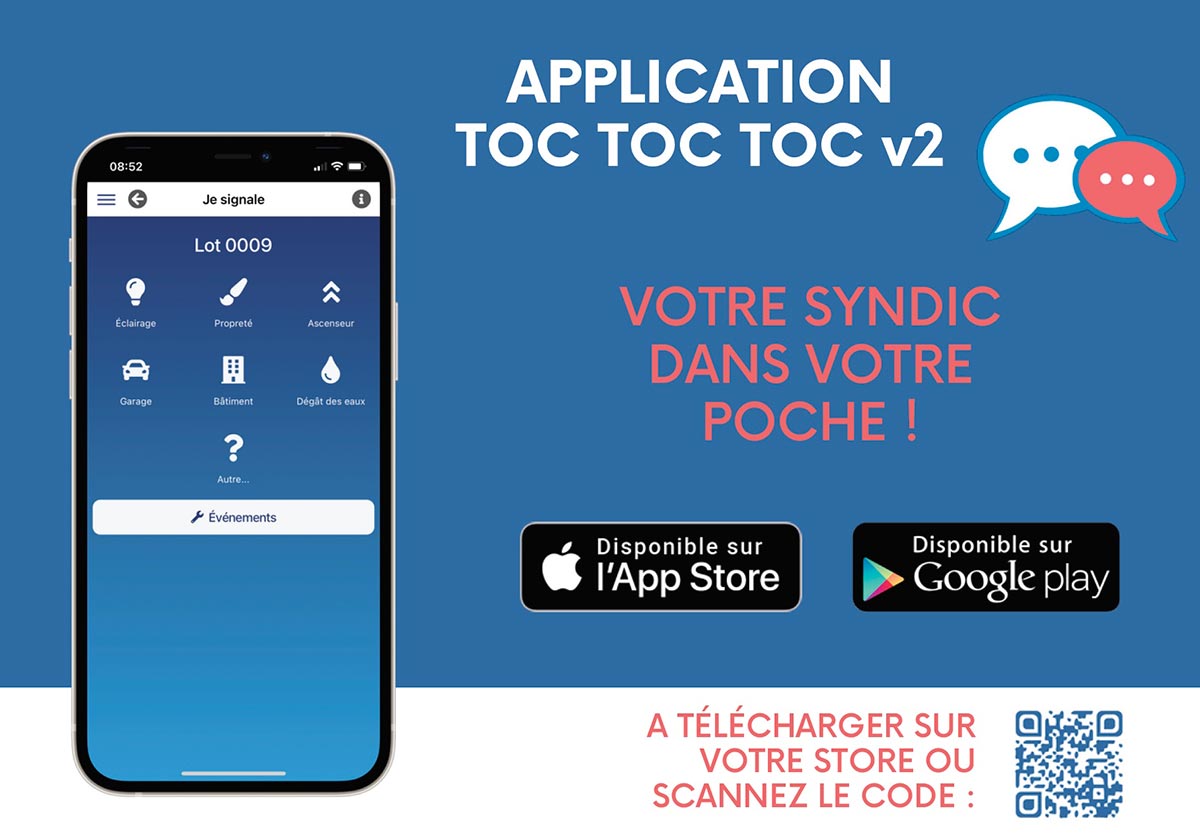 Pour simplifier le signalement de problèmes au sein de votre résidence, nous avons mis en place l'application Toc toc toc, disponible pour tous les smartphones Apple ou Android.